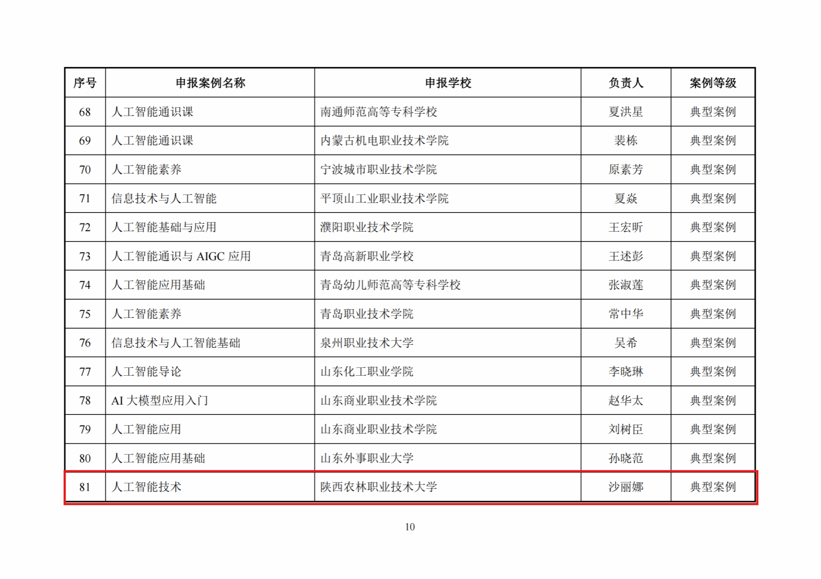 此次案例遴选旨在深入推进人工智能技术与职业教育教学改革深度融合,挖掘一批具有创新性、示范性、可推广性的教学案例,引领职业院校提升信息化教学水平和人才培养质量。经层层筛选、严格评审,学校两项案例凭借鲜明的特色、扎实的实践和显著的成效,成功入选公示名单,既是对学校教学改革成果的高度认可,也是对相关教师教学能力与创新精神的充分肯定。